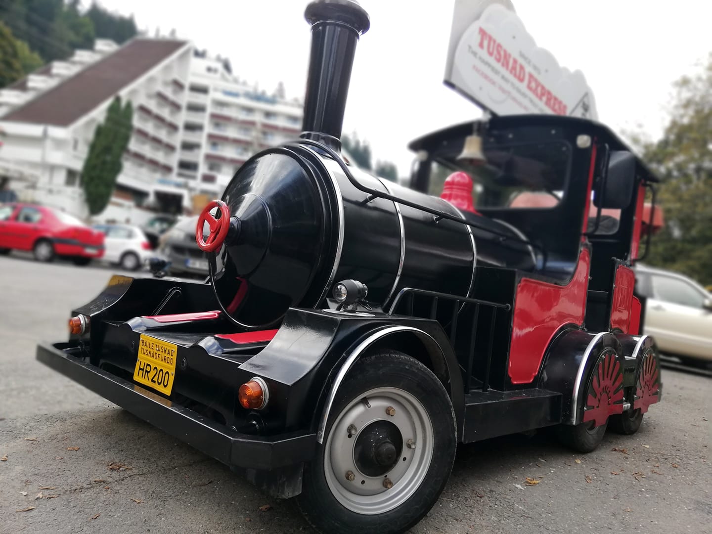 Turiştii care doresc să viziteze cele mai fumoase zone din oraşul Băile Tuşnad au la dispoziţie trenuleţul turistic "Tuşnad Express".